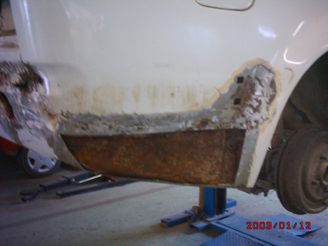 Teljesen szét volt rohadva,egy mm vas nem volt ott, csak lyuk meg cafatok.Beláttam hogy ez full kuka meg MÉH-telep vagymi.Úgyhogy be kellett szereznem v.honnan gyorsan egy menthető vezető oldali ajtót.Nagy mákomra Fekete Laci barátomnál pont volt egy pár ajtó tök jó állapotban amit még Sunya barátunktól vett anno, na ez kerül majd a helyére. Lesznek képek is holnap. (talán)