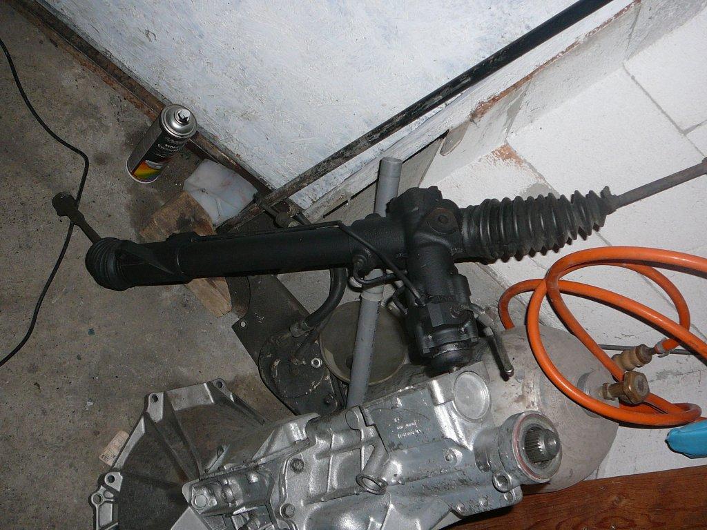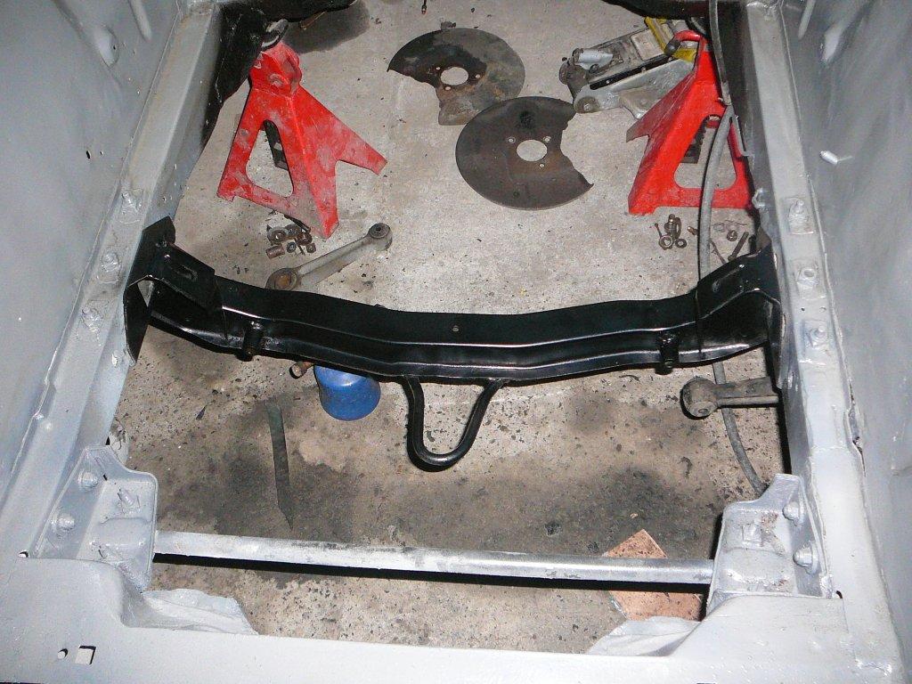 Bölcső, kormánymű lefestve, lengőkarok várják a poliszilenteket.