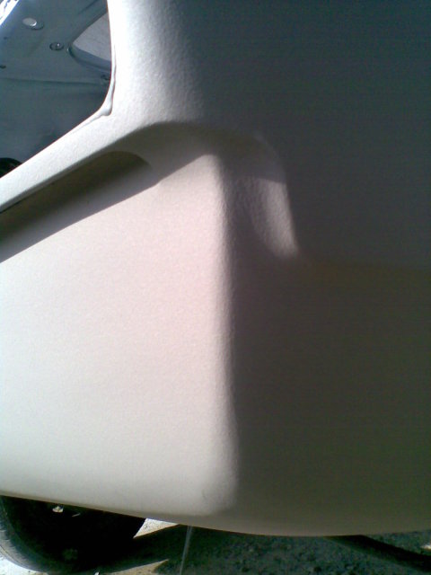 nem. a "párkány" alatt meg van a gyári végig, a lökőstartó kivágása a köténylemez belső rücsizése miatt le van kívülről (a gittszínű) kiragasztószalaggal takarva, nem láccik.