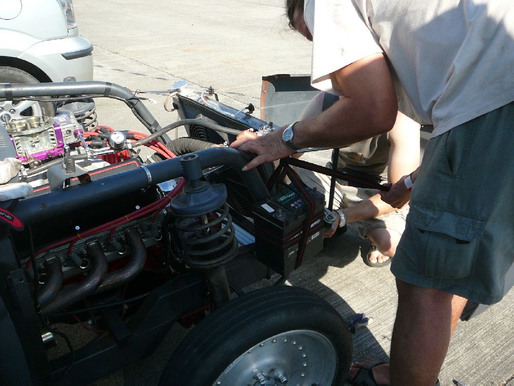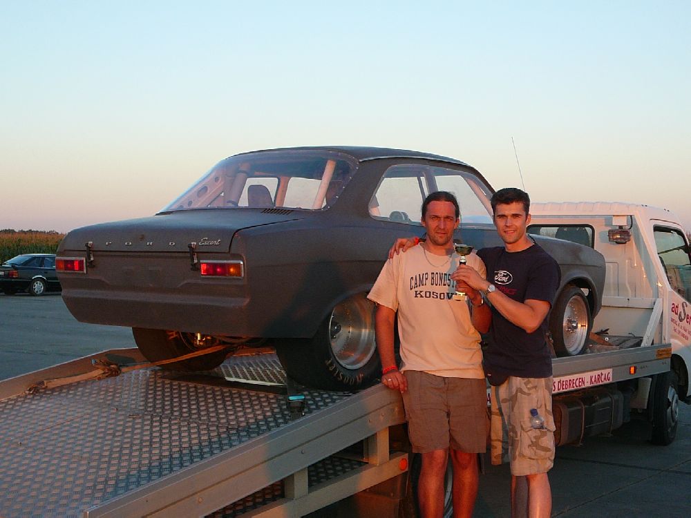Tegnapi napon versenyen voltunk az Escorttal. Most volt az első olyan, hogy érthetetlen műszaki problémák voltak a géppel. Leginkább abban nyilvánult meg, hogy nem akaródzott indulni, nem forgatta az önindító rendesen. Akku feszkó volt, kicseréltük az aksit de akkor is csak egy futamot bírt ki és azután megint nem indult, nem forgatta át a motort az önindító. Ha be is indult ha sebességbe lett rakva fulladozott, ami egy automata váltónál érthetetlen dolog. A végén úgy lett orvosolva a dolog, hogy az aksit előre költöztettük rövid kábelekkel és fura módon mindennemű probléma megoldódott.