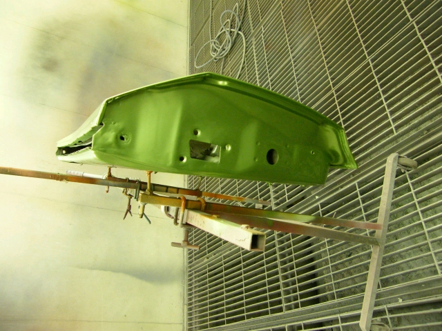 Nem kell sokat várni a sorotokra, nemsoká felviszik a gyöngyház fehér sávot, leragasztjuk a mintát (csíkot) oszt megy telibe ződre a többi..... :wink: