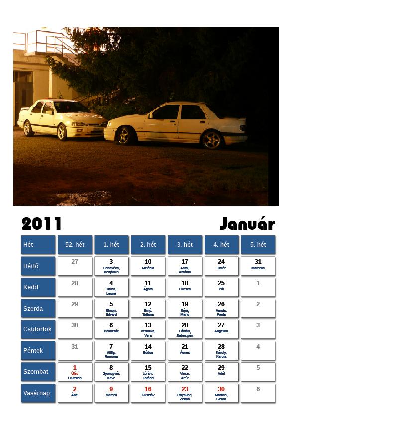 Oszinten szolva nekem a tavalyi naptar is nagy csalodas volt. Szerintem barmilyen autos naptarat ugy kell megtervezni, hogy miutan aktualitasat veszti, kitepve a lapjait azok meg tokeletes plakatokkent mutassanak mondjuk egy garazsban, muhelyben, ahova marha szivesen ki is raknam a kepeket. A lenyeg az ilyen naptaron mindenkeppen a kep, a napokat alulra egy savba szoktak rakni. Ha a kep sotet beallitasu, akkor ertelemszeruen mondjuk feher karakterekkel es forditva. Ezt nem tudja megcsinalni egy naptargyarto?