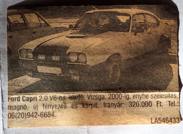 Az ikladi srác tőlem vette 2001-ben, tehát előtte az enyém volt.Én egy öreg fószertól vettem aki egy terepjáróba számolta be ezt a Caprit.....