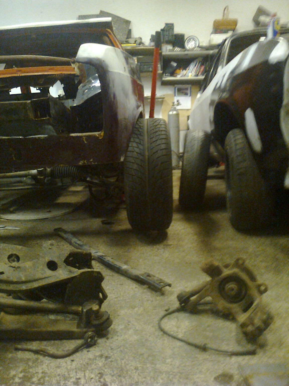 Az előzetes tervek szerint aszfalton fog inkább közlekedni a dög tehát ezt figyelembe véve próbáljuk beállítani az autót ( a lehetőségekhez képest ). A tervek szerint elől sierra / scorpio futóműből épített coilover, állítható toronycsapágyas megoldás, módosított lengőkar és bölcső lesz beépítve. Itt elméletben már megvagyunk a gyakorlati dolgok kb 50%-nál állnak. A hátsóról majd később.