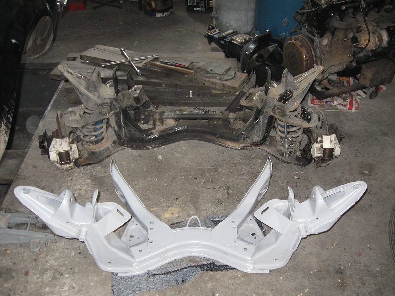 Na es hogy a vegere egy kis pozitiv elmeny is legyen, jojjenek vegre a szep kepek. Sajnos nem volt idom mindent komplett lepucolni, lefesteni, jelen pillanatban kizarolag ahhoz ragaszkodtam, hogy mechanikailag minden kivalo allapotba keruljon vissza. Lecsereltem az osszes gombfejet a lengokarokban, kicsereltem az elkorrodalt csavarokat mindenhol a futomuben, termeszetesen ugyelve arra, hogy a kenyes helyekre megfelelo szakitoszilardsagu csavarok keruljenek. Igy mar legalabb biztonsagos a kocsi.