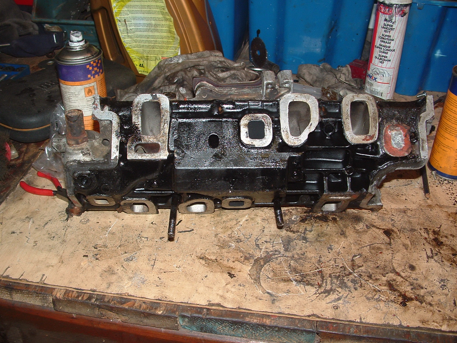 ma megmértem a műhelyben a különbséget egy 2.8 és egy 2.3 v6 karbis szivosor között, a képen a tiszta a 2.8. ha valakit érdekelnek a méretek, feltölthetem azokat a képeket is. a kérdés most az lenne a részemről, hogy a 2 szivosoron a vízjáratok kurvára nem ugyanott vannak. a 2.8 szivósor egy 78-s darab öntvényszám szerint gondolom granadából, a 2.3 egy 83-s és sierrából van. tudja valaki a miérteket, vagy hogy a 2.3 az mind ilyen? volt yenki szivosor is, de az egy harmadik tipus, meg az nem is annyira érdekes, mert ott a hengerfejek is mások. a 2.3 moci most nem volt a közelembe, de majd megnézem hogy a hengerfejei milyenek, lehet hogy azok is mások.