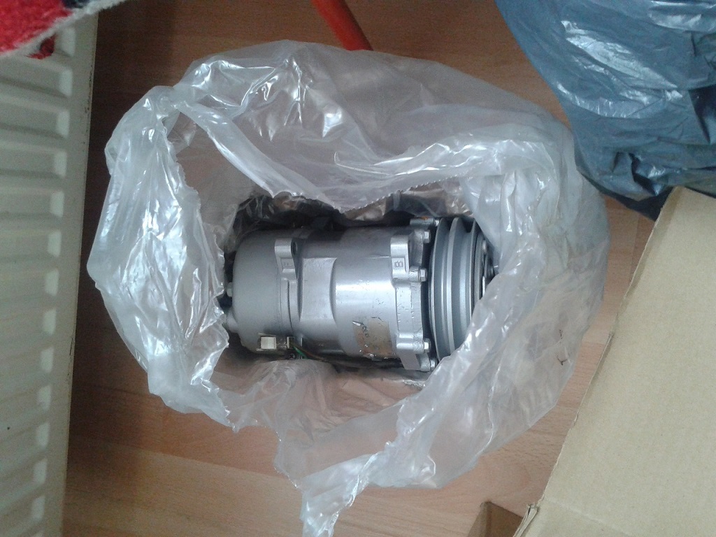 A klímakompresszor azért lett ez, mert ez ékszíjas, és relatíve könnyű lesz hozzá másikat találni, ha elromlik. Nem akartam hosszbordásszíjasat. Használtan vettem.
