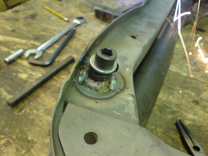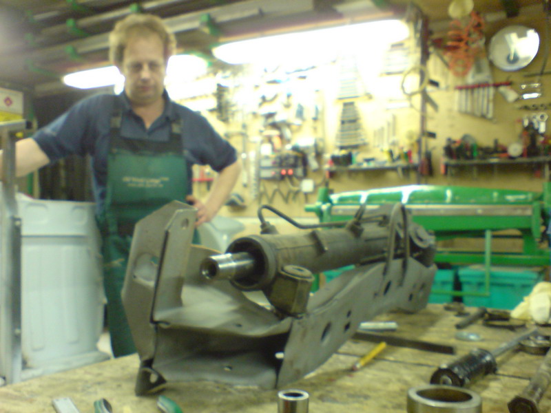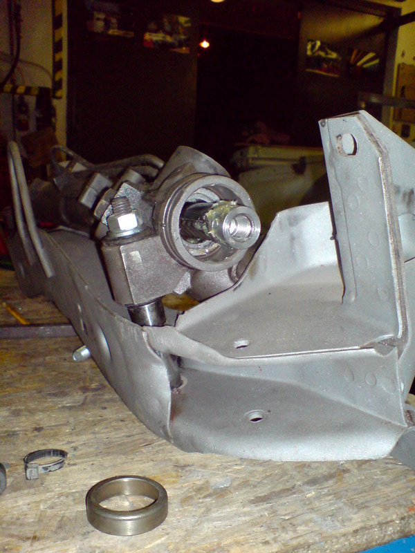 A másik szem így az eredetitől kb 2 centivel kijjebb került. A régi csöveket kiköszörültük, mivel az elejük amúgy is le volt köszörülve az eddig rajta lévő granada vagy tau szervó miatt. Mivel iszonyú kemény volt az anyag úgy határoztunk, hogy mi sem szarral gurítunk. Az új csövek Rover 825 2.5 V6 dugattyúcsapszegekből lettek, ami hajszál pontosan az a 22-es külső és 12,5-es belső átmérővel rendelkezik, mint az eredeti cső. Kifúrtuk a lukakat a jobb oldalon. Illesztettük a scöveket. illesztettük a kormányművet, fel is csavaroztuk és beállítottuk a megfelelő kiállásokat a csöveknek. Ehez hézagolóként egy régi kúpgörgős csapágy belsejét használtuk --> NO MOKING :)