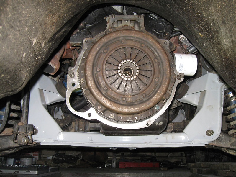 Szoval vasarnap fel is kerult. Vegul felraktam a kisebbik lendkerekkel, azt hiszem ez egy 2.8 lendkerek. A valtoban a kinyomovilla pocok lett modositva, megpedig ugy, hogy a pocokhoz hozza lett hegesztve egy 12-es menetes szar amin egy kontracsavar van. A valtoharangba menet lett vagva, igy a valto felrakasa utan is allithato maradt a kinyomovilla alapallapota. Szoval a valto fennt, de tovabbi problema a valtotarto bak illetve az, hogy az MT75 valtokar konzolja kicsit hosszabb mint kene, le kell roviditeni, hogy pont a jo helyen jojjon at a valtokar a kasznin. Hat ennyi fert bele most a vasarnapba...