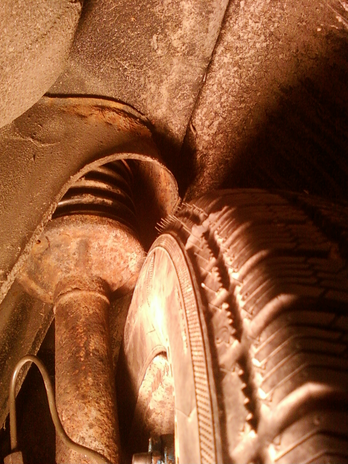 és hogy ne legyen elég a meglepetésekből, mikor felemeltük az autót, az egyik kerék a levegőben, a másik még a földön, pedig egyenes az autó. azt hittük hogy szar az az oldal ami lent van, aztán kiderült, hogy az a jó: