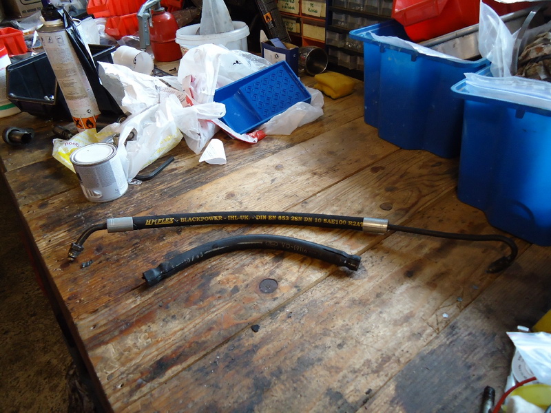 (és ami ezeken a fotókon nem is látszik, a visszafolyó cső, ami az angol cső teljes hosszának felhasználásával készült (az átmegy a másik oldalra, ahol a 2.8-on lenne a pumpa), milyen "szépen" ki lett vitelezve. az egyszerű szemlélő azt gondolná, hogy merő lustaság és sporolás miatt nem lett sehol elvágva az eredeti cső, csak visszahajtva a kormánymű felénél, meg még 2 helyen, és az eredeti gumicső feltolva a pumpáig, ennek kérem az olaj hűtése volt a célja! :mrgreen: )