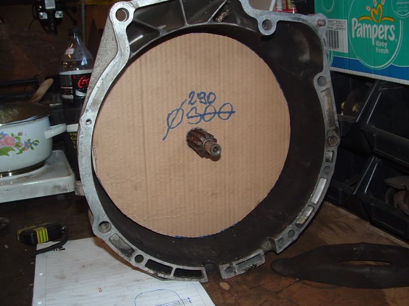 kb ennél a mélységnél / átmérőnél fognak egybevágni a dolgok. A BMW-n megmarad belül a merevítés ( kitakarja a papír ) a Saab-on meg az önindító fészke. Elfér a lendkerék és a kuplung is.