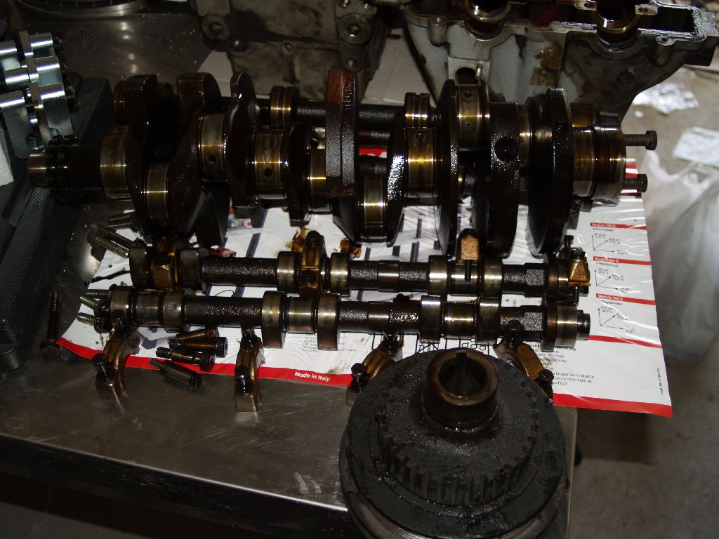 Az egész scorpi építéssel nem akartam a fórumotokat terhelni, de gondolom a Cossi moci bütykölése érdekes lehet nektek is..:-) Grancival ma kivettük a mocit, érdemes vetni egy pillantást a vezérműlánc állapotára, és volt egy számunkra furcsa jelenség, látni fogjátok a képeken, hogy a két hengerfej merőben másszínűre színeződött az olajtól mintha nem is egyféle olaj mosta volna őket...érdekes...
