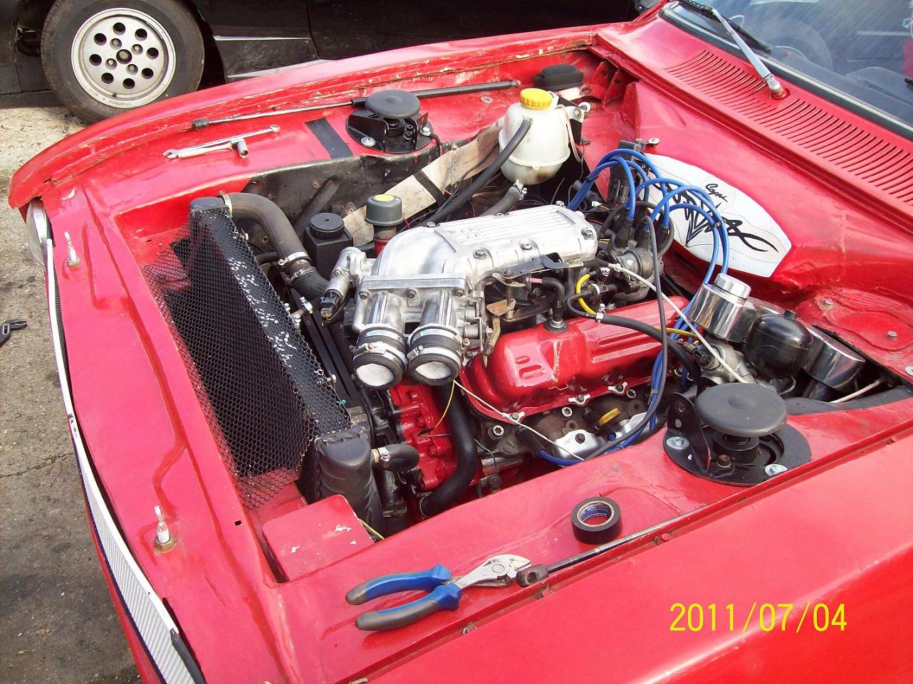 -Elöl a vízpumpánál ami kijön lent a nagy cső alatt az megy hátra az olajhűtőbe.(ez durran el)