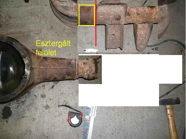 A sárgával jelölt felület lenne körbe esztergálva és a pirosnál elvágva. A sárga felületnél kellene a belsejét a külsejéhez képest központosan vonalba fúrni, hogy a híd két vége egytengelyű legyen.